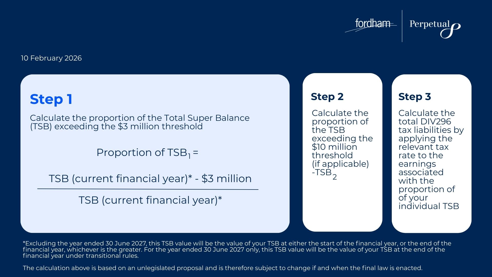 The legislation for Division 296 is not yet law, and every individual’s circumstances are unique - seeking personalised financial advice is strongly recommended before taking any action.